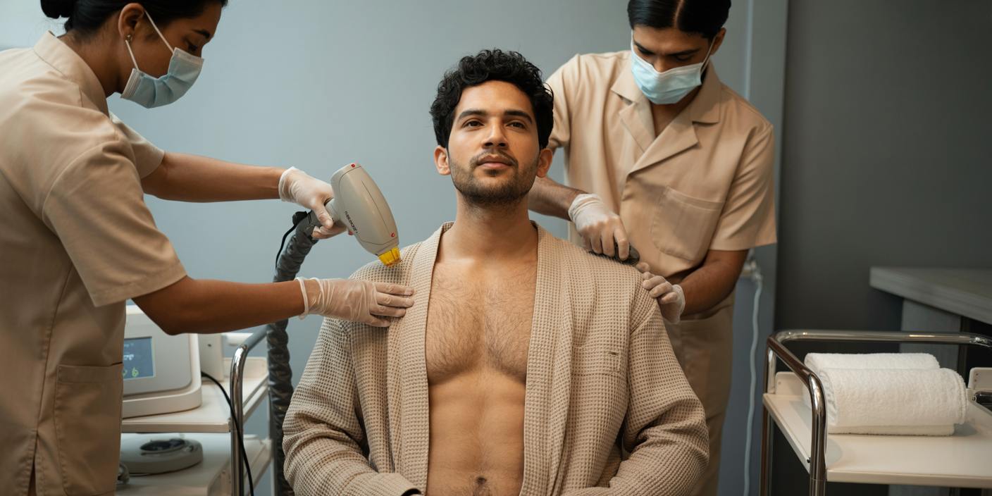 Full body hair removal for men offers a clean, polished look. Using advanced laser technology, we target unwanted hair and ensure smooth, hair-free skin for a longer time compared to traditional methods.