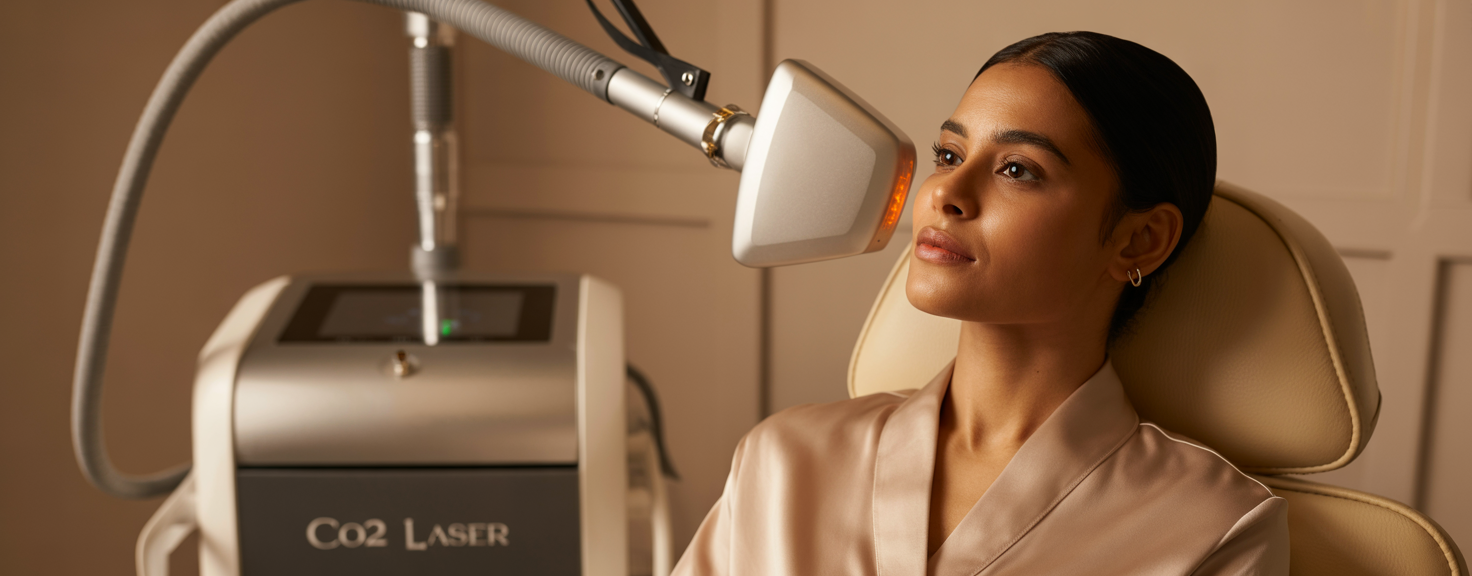 CO2 Laser is a powerful resurfacing treatment that targets deep acne scars, pigmentation, and wrinkles. The laser vaporizes damaged skin layers, stimulating collagen production and revealing smoother, younger skin.