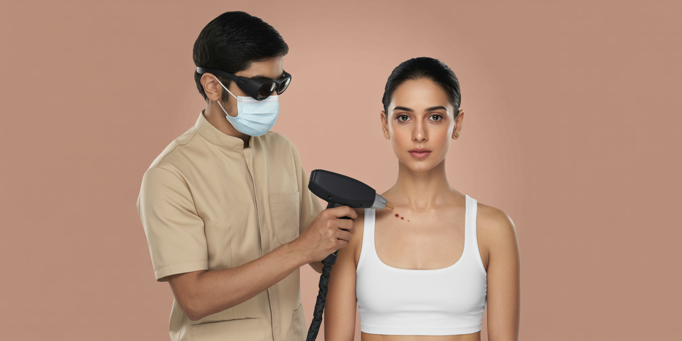 Moles are removed through either laser therapy or minor surgical procedures, depending on their size and type. The procedure ensures minimal scarring and quick recovery.